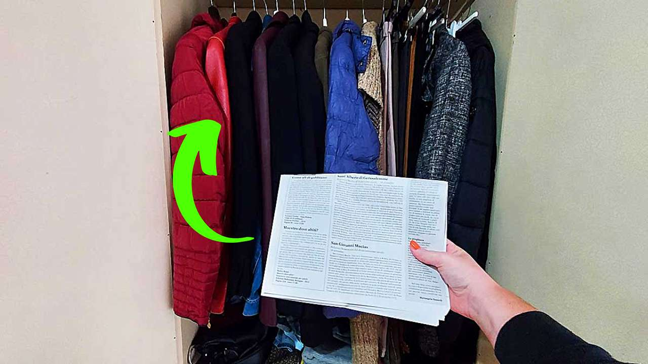 Le nonne usavano anche foderare l’interno dell’armadio con fogli di giornale per risolvere ogni tipo di problema. Ricordatevi di cambiare questi fogli almeno una volta alla settimana.
