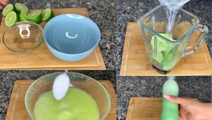 Una volta eseguito questo passaggio, dovrete utilizzare il vostro frullatore all’interno del quale metterete 500 ml di acqua e le bucce di limone precedentemente messe da parte. Attivate il frullatore e vedrete che si creerà una polpa densa che scolerete con un colino in una ciotola pulita.
