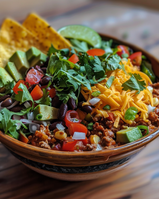 - Guarnire: Aggiungi l’avocado a cubetti, il formaggio cheddar grattugiato e le tortilla chips spezzettate. Guarnisci con coriandolo fresco se desideri.