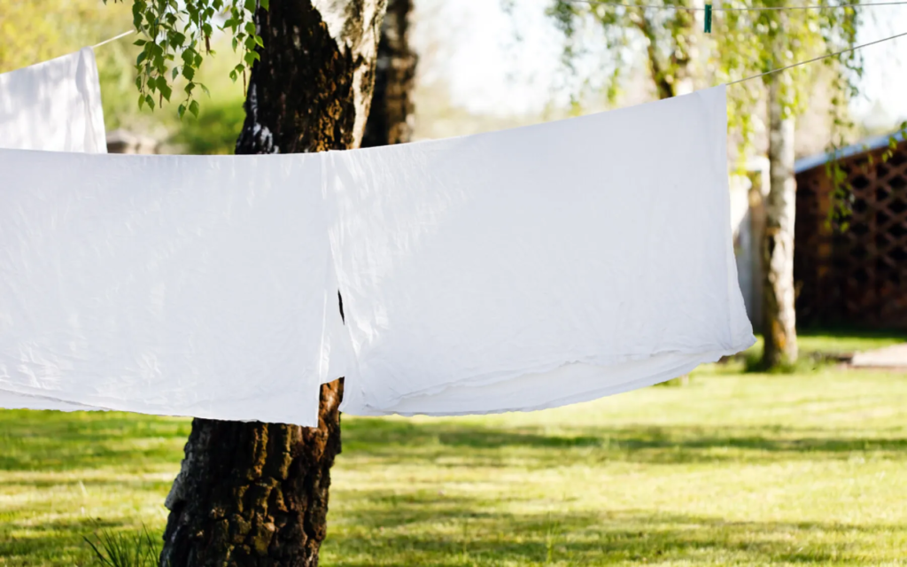 - Esposizione al Sole: Posiziona il biancheria all’aperto, esposto al sole diretto. Lascialo asciugare completamente, facendo attenzione a girarlo occasionalmente per garantire un’esposizione uniforme.
