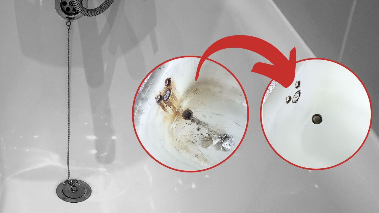 Bisogna continuare fino a quando il fondo non sarà di nuovo bianco . Ci vorranno al massimo 2 minuti. Se ciò non dovesse accadere, può essere utile lasciare agire la crema per mezz’ora. Trascorso questo tempo si può risciacquare con abbondante acqua e la vasca tornerà come nuova.